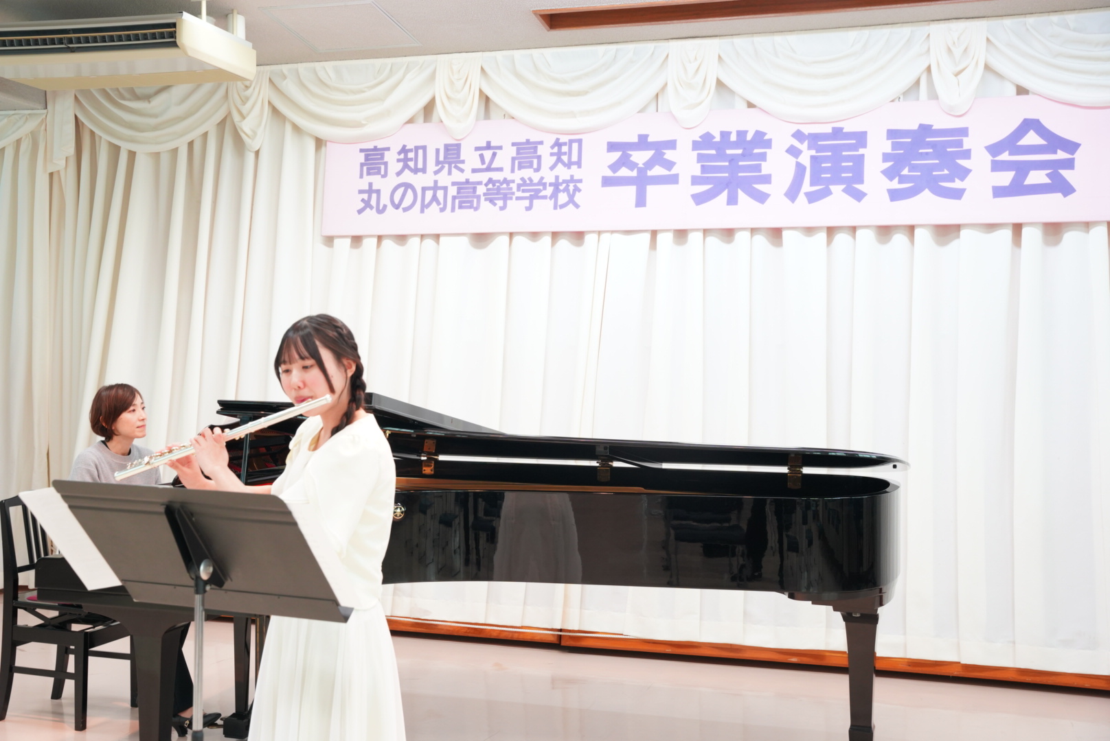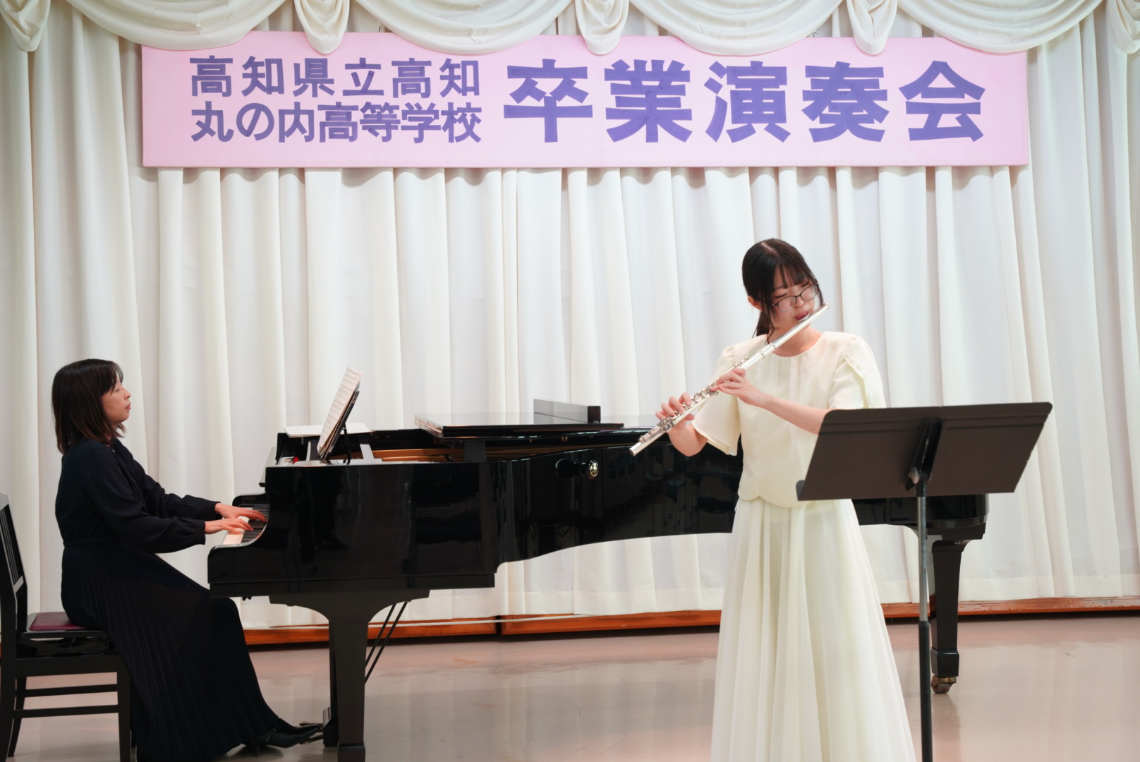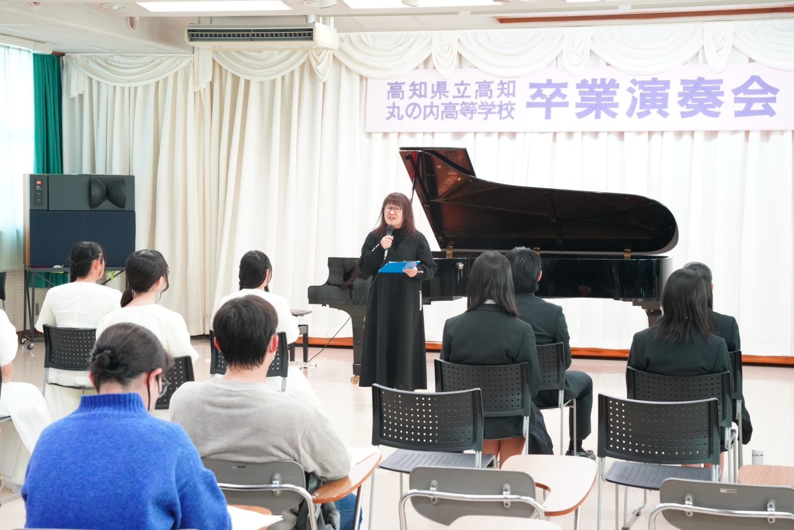 令和7年12月、音楽科3年生の集大成といえる卒業演奏会が校内で行われました。ここでは若葉コンサートで学んだこと(運営、準備、礼法)を全員がフル動員して3年生のひのき舞台を作ります。