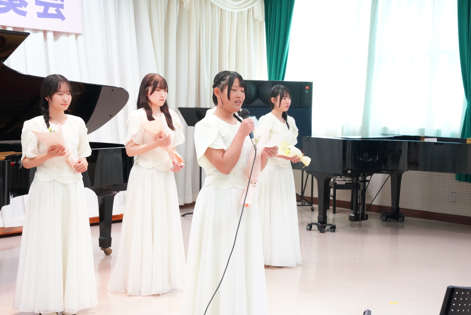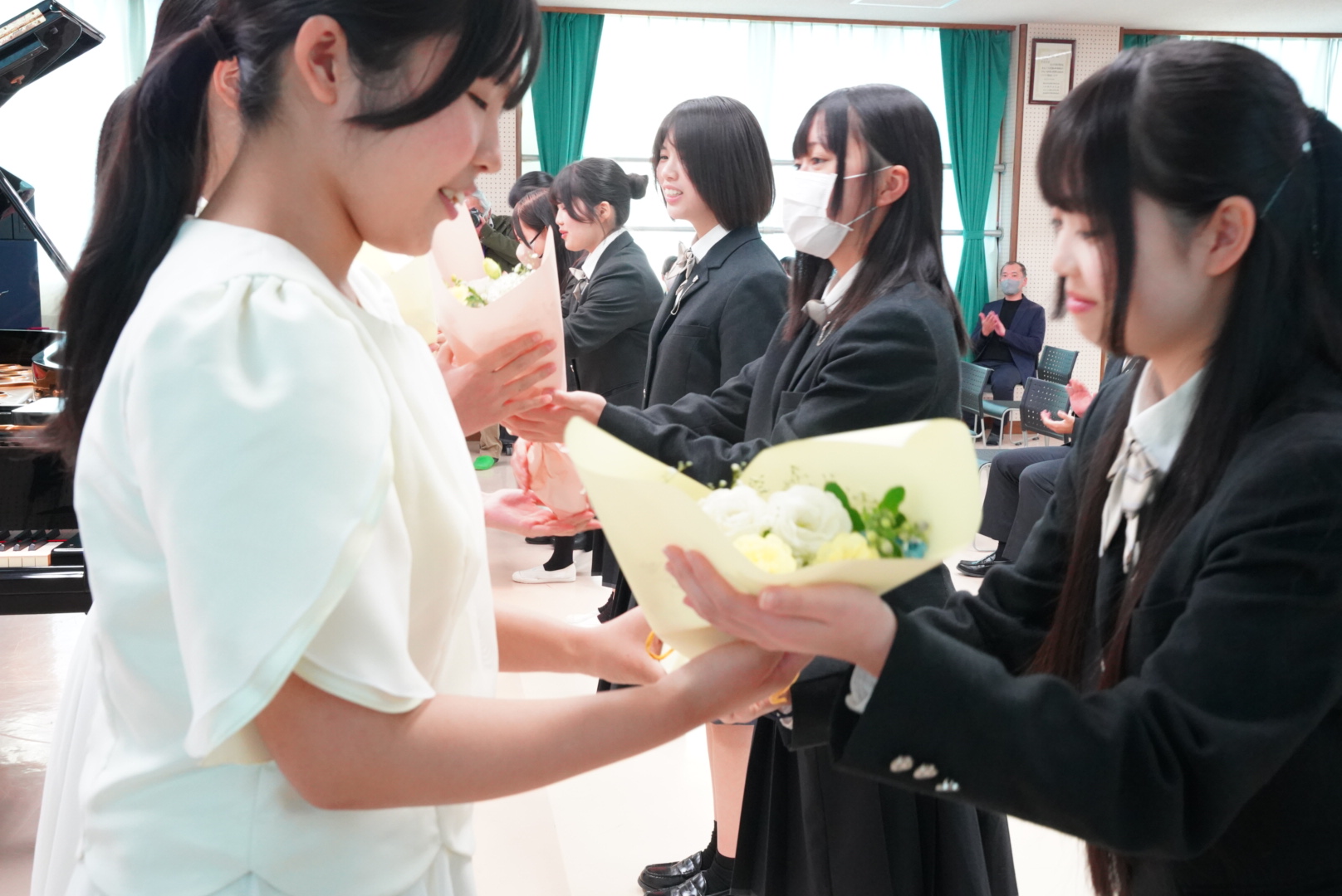 最後は後輩から花束贈呈と、3年生代表生徒から最後の挨拶。もちろんオレンジホールの定期演奏会も集大成なのですが、実は合唱室で行う卒業演奏会こそ、ほんとの集大成なのかもしれませんね。