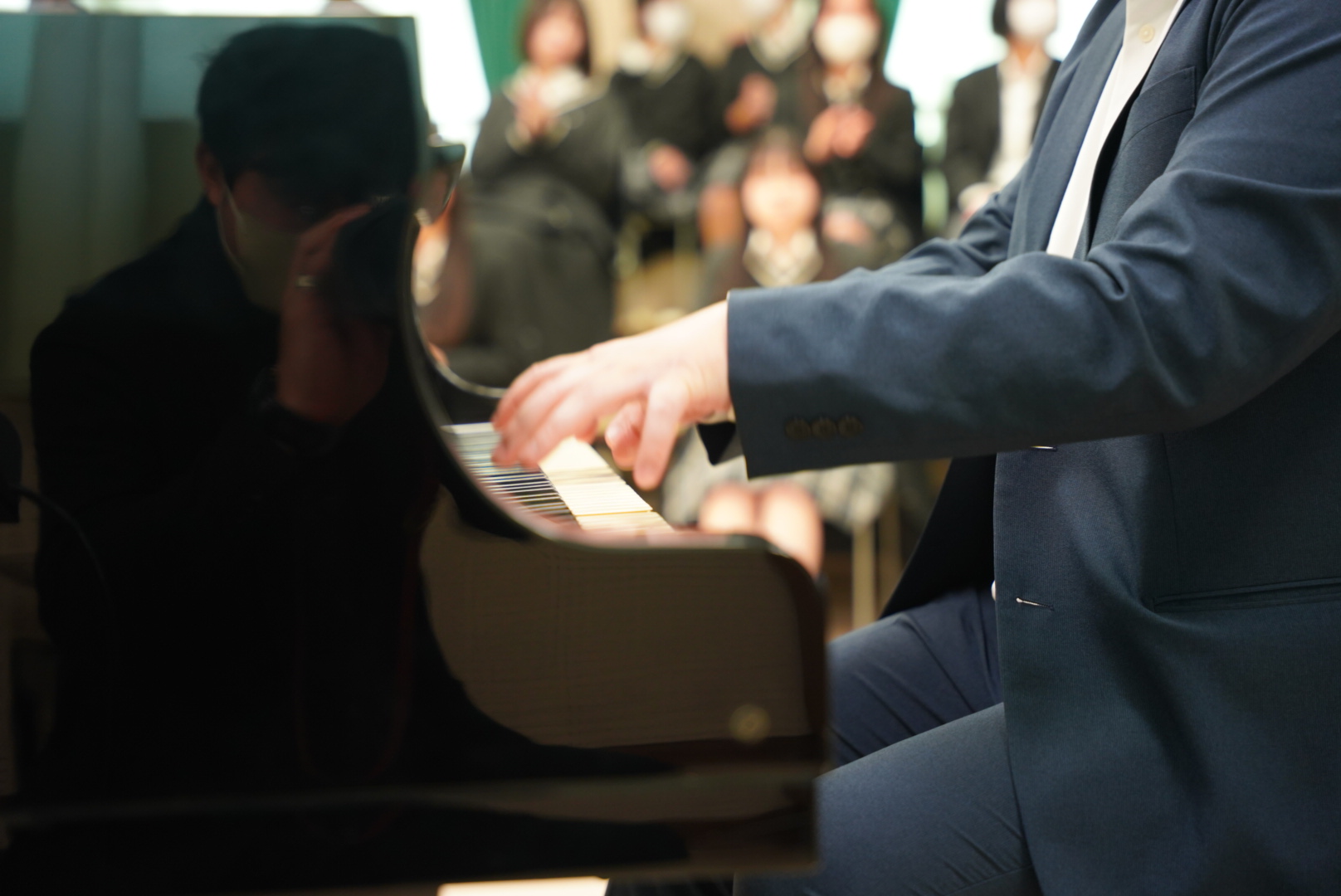 私広報担当が、高瀬君と一緒に全国ツアーをしたり、東京や高知でコンサートをしていたのがご縁で来校していただいたのですが、それがもう7年も前ということに衝撃を受けました。一緒にピアノを弾いたらお互いにゼエゼエ、移動はなるべく車にしよう、、とそりゃ歳もとるよなあと感じたことでした。